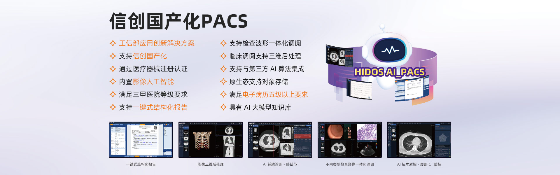 影像信息化深耕15年以上,影像產(chǎn)品群全面,擁有全院PACS/RIS、影像檢查醫(yī)技臨床預(yù)約、云影像(云膠片)、區(qū)域影像暨檢查互認(rèn)、影像中臺、影像人工智能、MDT多學(xué)科聯(lián)合會診、遠(yuǎn)程醫(yī)療協(xié)同平臺解決方案,是國內(nèi)極少能全面提供上述全套產(chǎn)品群的廠家之一。